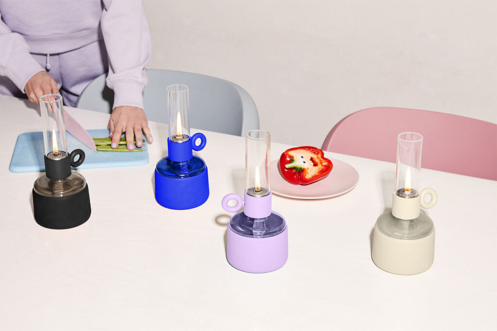 An oil lantern, like the ones from the past, made of glass and protected by a silicone case to prevent burns. Colorful and unexpectedly modern, it’s perfect for outdoor use.