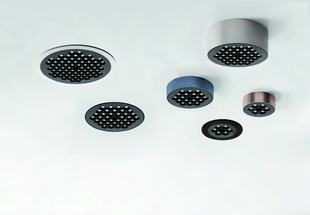 Disegnato da Carlotta de Bevilacqua, Helgoland di Artemide è una soluzione innovativa. Si tratta di un prodotto con maglia esagonale brevettata che massimizza il flusso luminoso e consente un’illuminazione uniforme, eliminando l’effetto delle ombre multiple, abbinata a una lente circolare che controlla il 100% della luce emessa. Disponibile in diverse versioni per installazione a soffitto, a incasso o con braccio orientabile, si abbina a trim e frame colorati proposti in tonalità cobalto, rame, argento, bianco, nero.