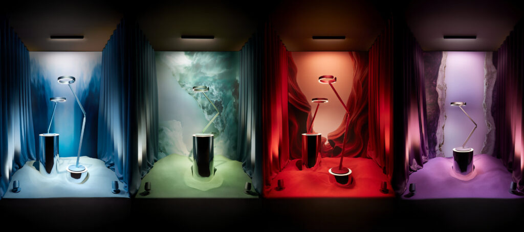 La raffinatissima ditta tedesca Occhio ha lanciato alla scorsa MDW una palette di 18 colori con cui è possibile personalizzare una selezione di prodotti già inseriti a catalogo. Viola, rosso, blu e verde – ciascuno in tre differenti nuance – potranno essere richiesti dai clienti a partire dal primo trimestre 2026.