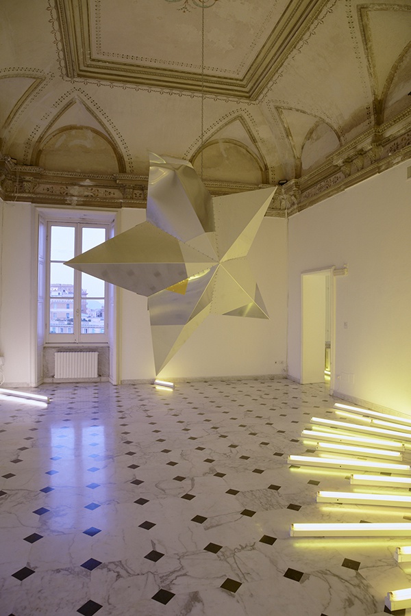 Lampioni piegati o inclinati, pali che si adagiano al suolo o si avvolgono su se stessi diventano protagonisti di opere che interrogano la relazione tra la città e la sua infrastruttura luminosa. La deformazione introduce una temporalità: sembra di assistere a un evento immaginario, come se l’oggetto fosse il risultato di una forza non visibile. Accostati alla luce artificiale, questi elementi trasformano l’ambiente urbano in un campo di possibilità narrative. Le figure simboliche sfruttano la luminosità come componente strutturale: la luce ne evidenzia il contorno, li rende quasi diagrammi sospesi, sottraendoli al rigore delle forme quotidiane.