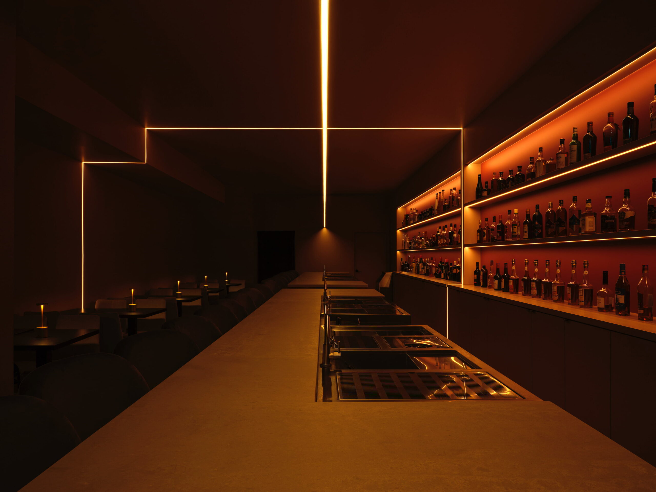 Luce naturale e artificiale si fondono in un gioco di contrasti e suggestioni, creando un’atmosfera unica e dinamica. Durante il giorno, la Canteen si apre al quartiere, diventando una vetrina luminosa che invita i passanti ad entrare e a scoprire il suo vivace interno. L’illuminazione artificiale è studiata per esaltare le diverse funzioni dello spazio.