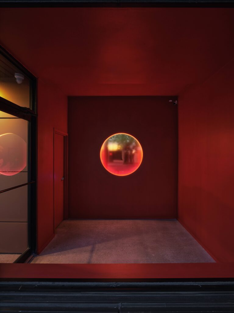 Su una strada secondaria di Toronto una vetrina diffonde un bagliore intenso richiamando l’attenzione dei passanti mentre, al di là del vetro, una porta con un codice segreto nasconde Suite 115, il cocktail bar progettato da Atelier SUN. Uno spazio nato nel 2024 per celebrare la cultura della vita notturna attraverso un’esperienza originale, in equilibrio tra mistero e calore. Tutto inizia dalla raccolta lounge all’ingresso che prende ispirazione dai colori del tramonto: nel momento dell’apertura del bar, le pareti rosse illuminano lo specchio centrale che cattura i riflessi dei clienti e riporta la combinazione segreta per entrare nel locale.