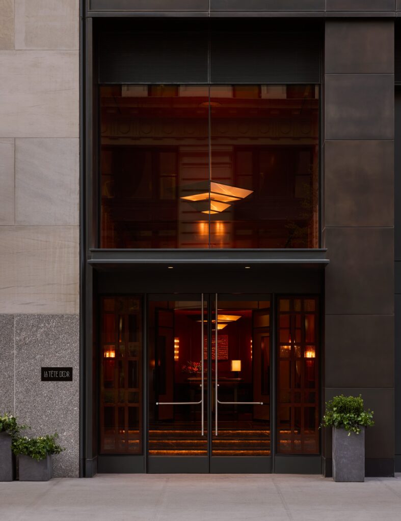 Opened in New York at the end of 2024 and designed by Rockwell Group and L’Observatoire International, La Tête d’Or is the steakhouse by chef Daniel Boulud, covering 1,250 square meters on the ground floor of One Madison Avenue. The space merges culinary excellence with design, offering a unique sensorial experience in which lighting becomes the protagonist — starting from the exterior. Observing the restaurant from outside, you immediately perceive its intimate warmth, drawing the eye and inviting guests to step in.
