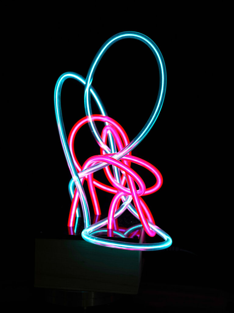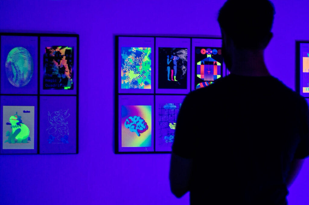 Immersive and interactive experiences, where the viewer actively engages with the work. This is the case with the kinetic works of Antonio Barrese, the immersive project Del Sublime, and Quadrifluox, where light is not only observed but experienced physically—reshaping the perception of space and image through Wood’s light. The audience is invited to step inside the work, to engage with it physically and sensorially. More than simply looking, it is about experiencing: it is in this shift that light returns to being a relational dimension, not just a visual one.