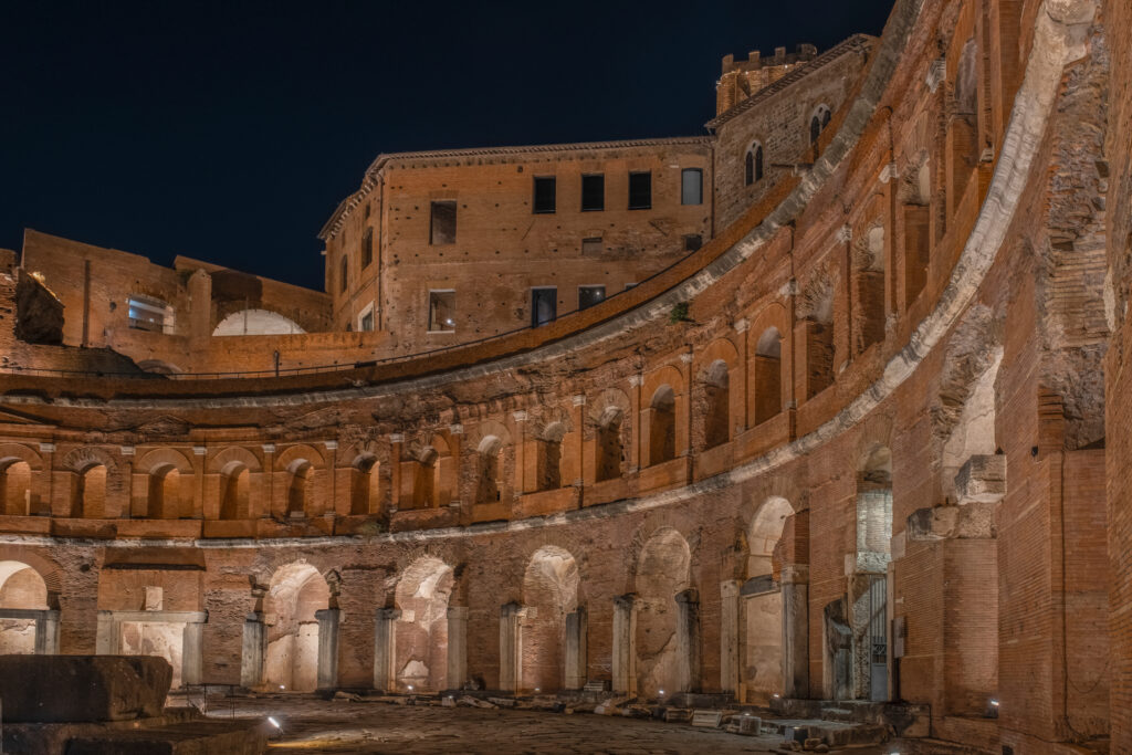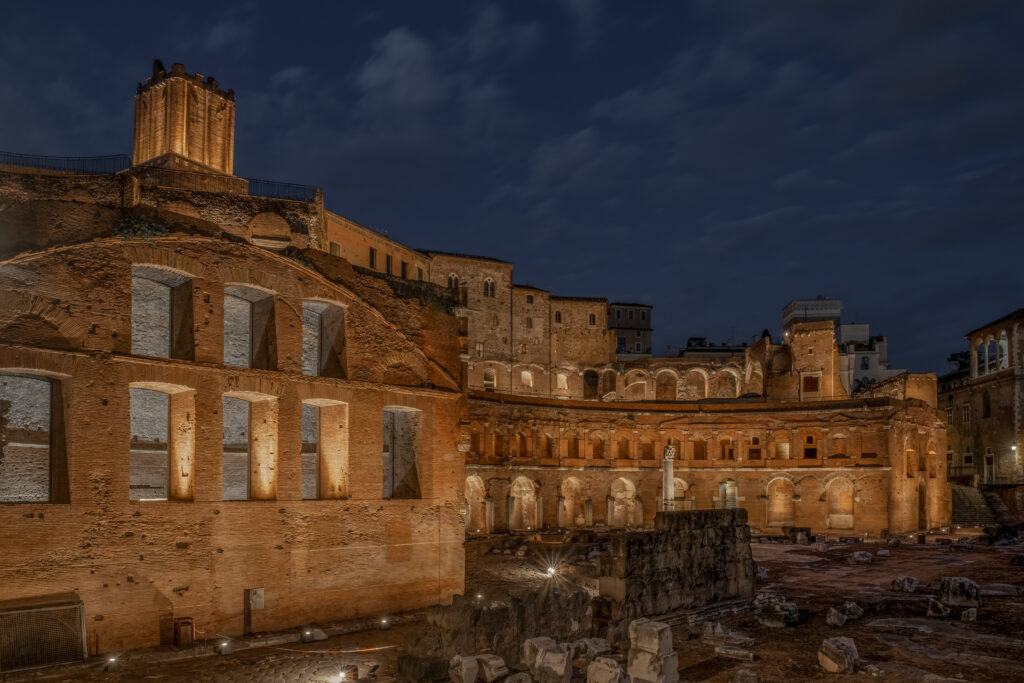 After a year of research and design, the unveiling of the new artistic lighting at Trajan’s Market took place last June. The archaeological site at the foot of the Quirinal Hill, in the very heart of Rome and steps away from the Imperial Fora, now shines with a balanced, precise scheme that enhances the brick architecture and restores harmony within its historic surroundings.